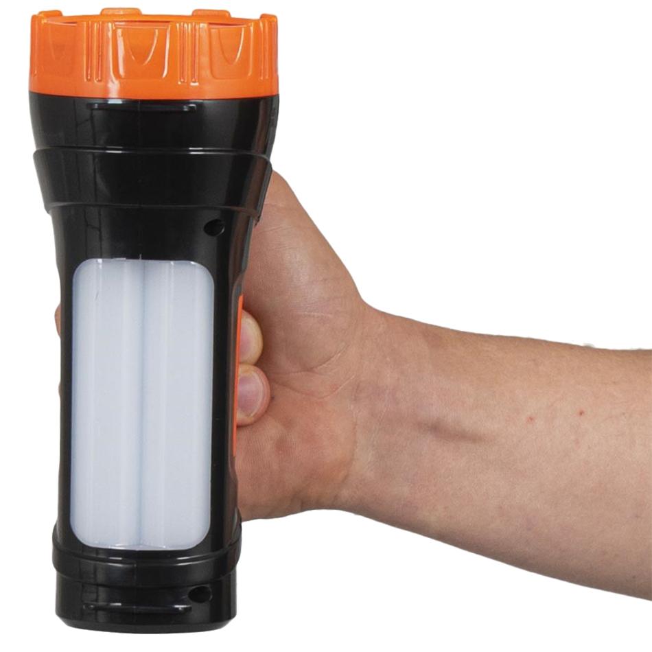 Svietidlo / Searchlight LIBOX LB0170 je svietidlo s dvoma funkciami, vybavené účinným dobíjacím zdrojom, ktorý nevyžaduje výmenu batérie. Zabudovaná batéria sa nabíja priamo z 230V zásuvky. Baterku je možné použiť nielen ako pátracie svetlo, ale vďaka bočnej lampe aj ako stojacu kempingovú lampu alebo lampu na čítanie. Hlavný kondenzačný reflektor je založený na Ultra LED dióde a vytvára jasný lúč svetla na vzdialenosť až 200 metrov. V jednom režime svieti plným výkonom. Po zvislom umiestnení baterky dostaneme jasné dobíjacie svietidlo pozostávajúce z 24 širokouhlých SMD LED diód. Toto riešenie sa perfektne hodí napríklad pod stan, v spálni alebo pri oprave auta, pričom poskytuje jasné svetlo. Zabudovaná bezúdržbová batéria 4x800mAh je určená na 500 nabíjacích / vybíjacích cyklov. Ide o výraznú úsporu peňazí, ktoré by ste museli minúť na nákup viacerých sád batérií. Pre nabitie batérie stačí pripojiť priložený kábel so zástrčkou a zastrčiť do domácej zásuvky 230V.