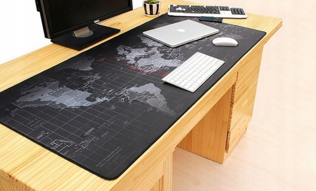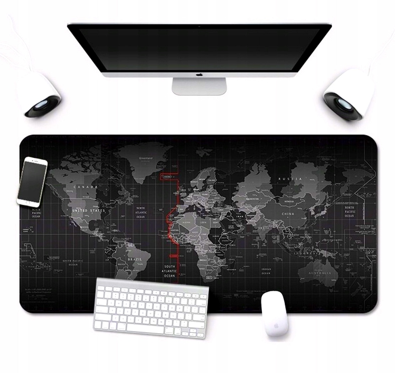 Doprajte si jedinečný zážitok z práce či učenia s podložkou pod myš a klávesnicu s motívom mapy sveta. Táto podložka v rozmere 80 x 30 cm je nielen štýlovým doplnkom vášho pracovného stola, ale aj praktickým riešením pre ochranu povrchu pred poškodením. S moderným dizajnom v odtieňoch čiernej, šedej a červenej sa skvele hodí do každej kancelárie, domácej pracovne či študentskej izby.