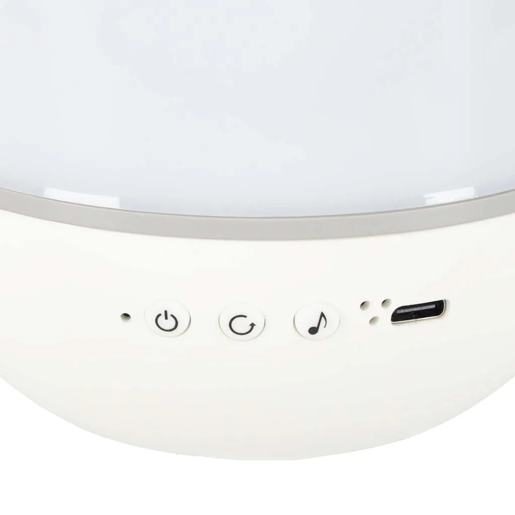 Vďaka diaľkovému ovládaniu môžete pohodlne meniť farby, jas, spúšťať hudbu, otáčanie či nastaviť časovač na automatické vypnutie po 15 alebo 30 minútach. Nočné svetlo je vybavené nabíjateľnou lítium-iónovou batériou (1200 mAh) s prevádzkovým časom až 5 hodín na jedno nabitie.