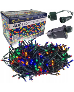 Reťaz je vybavená 400 LED diódami vo farbe multikolor, ktoré vytvárajú veselú a sviatočnú atmosféru. Je určená pre interiérové aj exteriérové použitie, vďaka krytiu IP44 odoláva vlhkosti aj miernym poveternostným vplyvom.