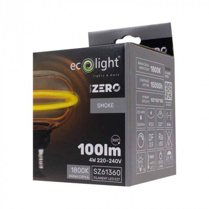 Dekoratívna LED žiarovka ZERO SERIES v dizajnovom prevedení G103 s dymovým sklom je ideálnou voľbou pre tých, ktorí hľadajú kombináciu estetického vzhľadu a jemného ambientného osvetlenia. Vďaka veľmi teplej farbe svetla vytvára príjemnú, relaxačnú atmosféru, ktorá sa hodí do obývacej izby, spálne, reštaurácií, kaviarní alebo salónov. Veľký priemer tienidla a elegantné dymové sklo robia z tejto žiarovky nielen svetelný zdroj, ale aj výrazný dizajnový doplnok interiéru.