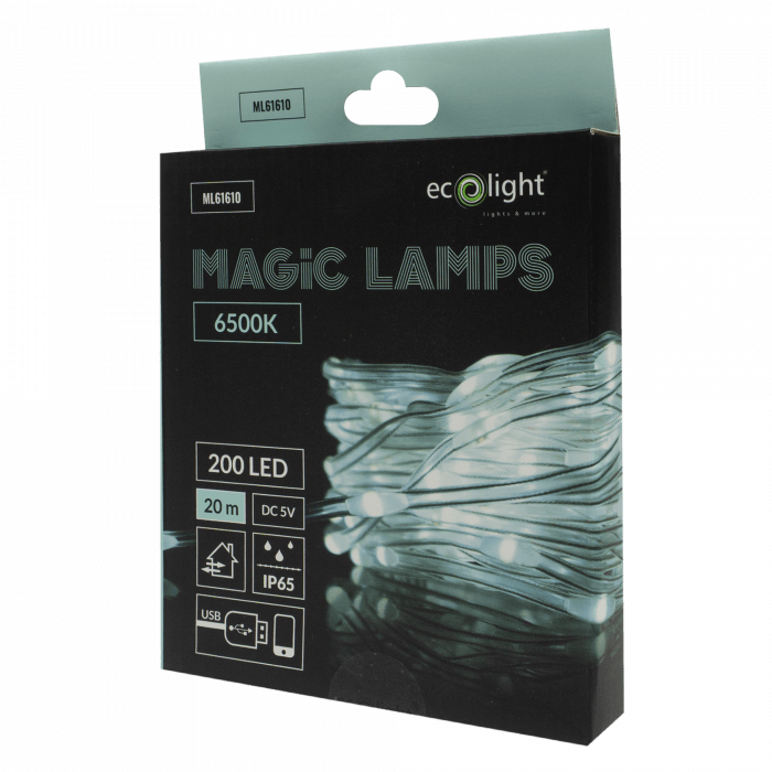 Vytvorte čistú a jasnú svetelnú atmosféru s 20-metrovým LED reťazcom, ktorý obsahuje až 200 kvalitných LED diód. Studená biela farba svetla s teplotou 6500K prináša výrazný, živý a energický efekt, ideálny na zvýraznenie detailov, osvetlenie pracovných priestorov alebo dekorácie v moderných interiéroch. Reťazec funguje na bezpečné USB 5V napájanie, vďaka čomu ho môžete použiť takmer kdekoľvek – cez nabíjačku, powerbanku, notebook alebo USB adaptér.