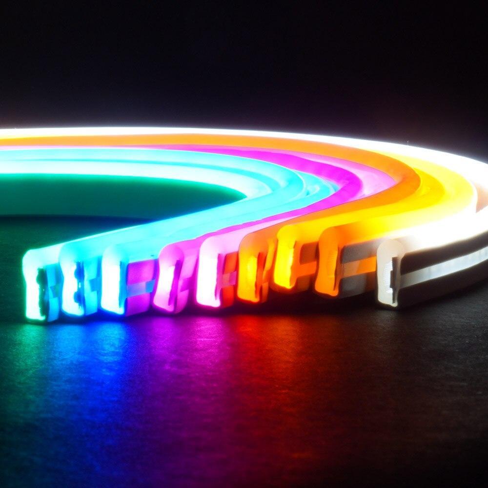 Neón využíva kvalitné LED diódy typu 2835 s vysokou svietivosťou a nízkou spotrebou energie. Flexibilná doska konštrukcia umožňuje ohýbanie oblúkov a kopírovanie tvarov, pričom zachováva rovnomerné svetlo v uhle až 180°. Vďaka krytu IP65 je vhodný aj do exteriéru pri dodržaní správneho zaizolovania rezných miest.