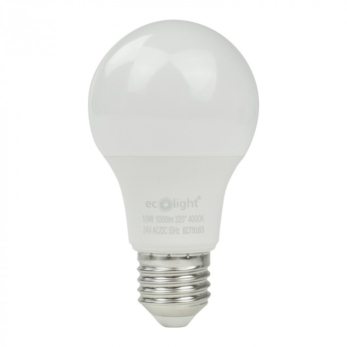 E27 LED žiarovka 24V AC/DC 10W - Neutrálna biela