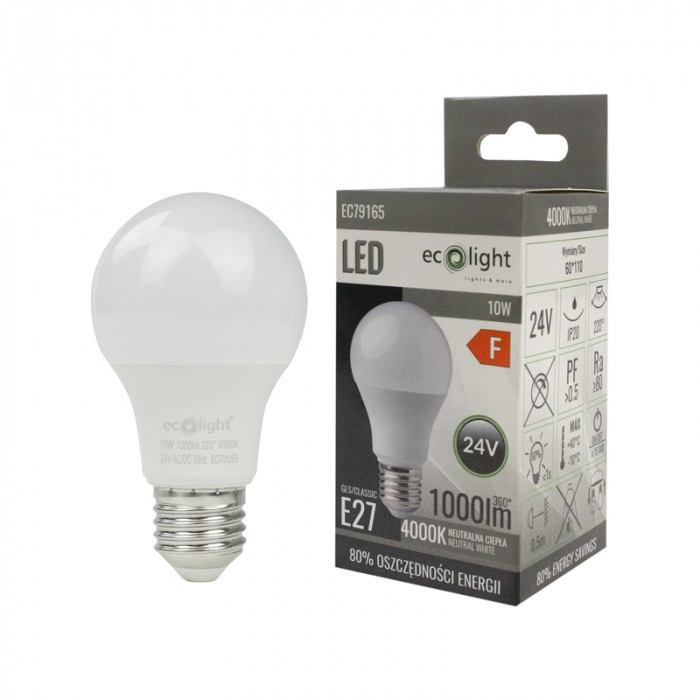 LED žiarovka A60 CLASSIC E27 10W 24V 4000K