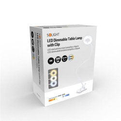 Solight LED stmievateľná stolná lampička s klipom – biela, 300 lm, USB