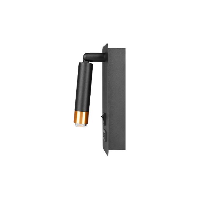Lampa na čítanie Piero G9 USB v kombinácii matnej čiernej a zlatej farby je štýlovým a funkčným doplnkom do moderných aj industriálnych interiérov. Vďaka kompaktným rozmerom, nastaviteľnému reflektoru a integrovaným USB portom je ideálnou voľbou na nočný stolík, pracovný stôl, čítací kút alebo do hotelových izieb.