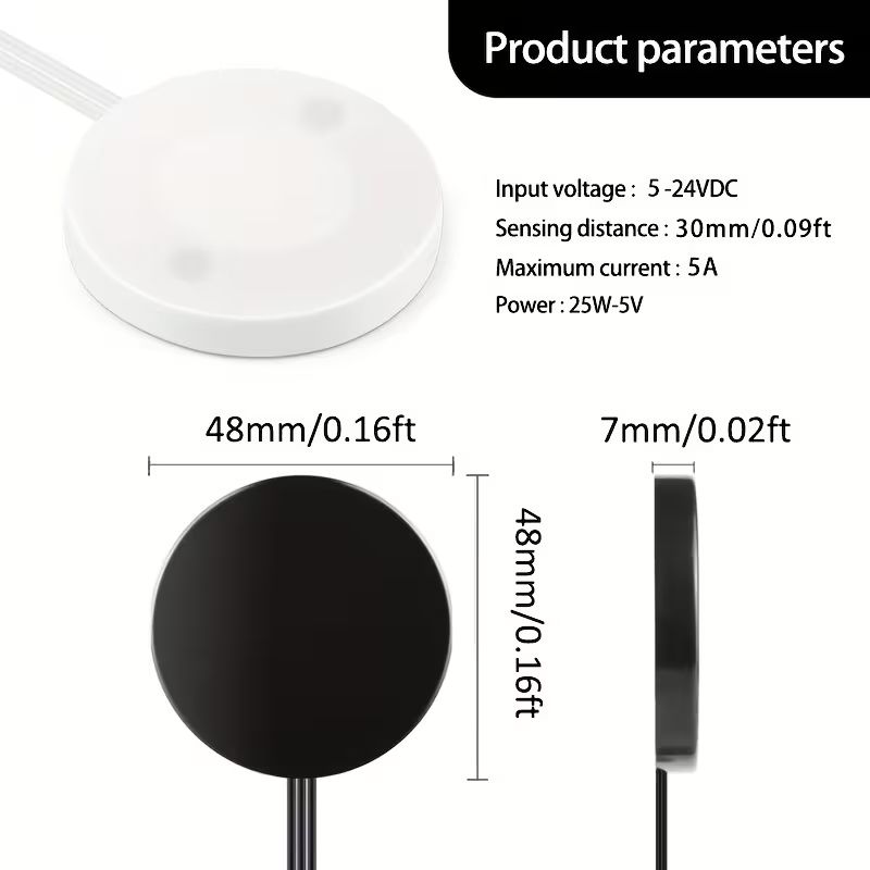 Senzor pracuje v rozsahu napätia 5–24V DC a zvládne prúd až 5A, čo ho robí vhodným pre väčšinu LED pásov, modulov a svietidiel v domácnostiach, nábytku či komerčných priestoroch. Ideálne sa hodí napríklad do kuchynských liniek, šatníkov, vitrín, kúpeľňového nábytku alebo dekoratívneho osvetlenia.