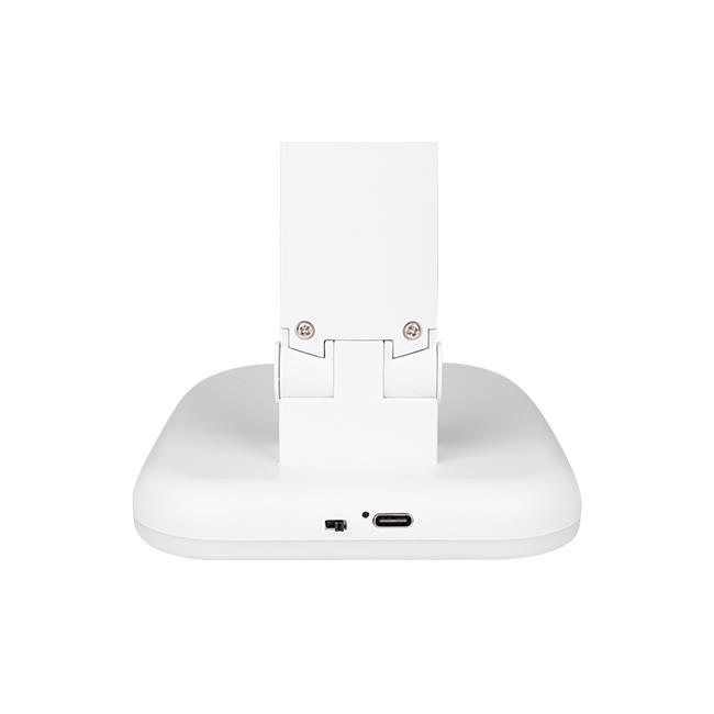 Minimalistický dizajn v bielej farbe sa hodí do moderných interiérov a kompaktné rozmery umožňujú umiestnenie aj na menšie pracovné stoly. Ovládanie je riešené dotykovým tlačidlom v základni, ktoré umožňuje zapnutie, zmenu farby svetla aj plynulé stmievanie.