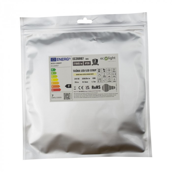 LED pásik COB 320 7W/m 3000K 770lm/m 24V IP20/5m/P