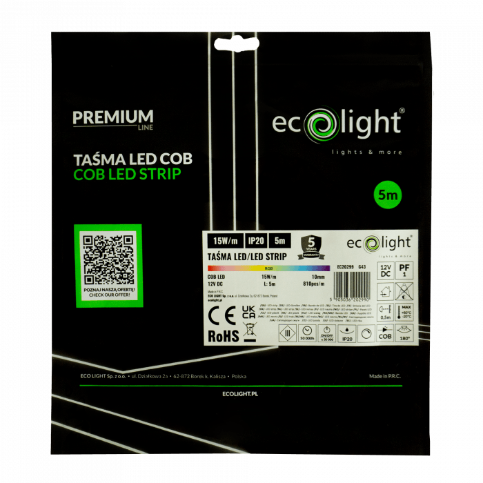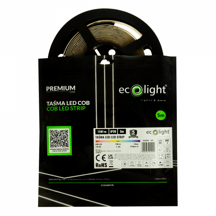 COB LED pás 810 predstavuje moderné riešenie dekoratívneho aj funkčného osvetlenia. Vďaka technológii COB (Chip On Board) poskytuje súvislú svetelnú líniu bez viditeľných bodov, čo vytvára elegantný a rovnomerný svetelný efekt. S hustotou až 810 LED diód na meter dosahuje vysokú svietivosť a zároveň príjemne rozptýlené svetlo s uhlom vyžarovania až 180°.