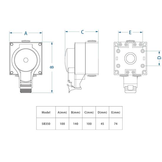Zásuvka je vybavená tromi káblovými vstupmi (2× M20 a 1× M25), čo umožňuje jednoduché pripojenie alebo prepojenie s ďalšími elektroinštaláciami. Vodiče s prierezom až do 3× 2,5 mm² zabezpečujú dostatočný výkon pre široké spektrum zariadení.