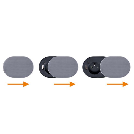 Minimalistický dizajn v matnom nerezovom prevedení (inox look) zapadne do každého interiéru. Posuvné viečko zabezpečuje čistý vzhľad a zároveň chráni zásuvku aj USB porty pred prachom, nečistotami a náhodným zatečením kvapalín. Výhodou je možnosť odkryť iba USB porty alebo celý napájací modul podľa potreby.