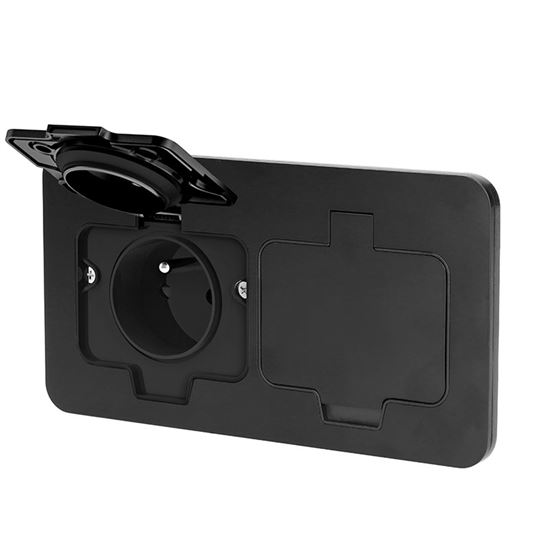 Zásuvka je vybavená detskou poistkou, ktorá zvyšuje bezpečnosť najmä v domácnostiach s deťmi. Viečka sa otvárajú až do uhla 130°, čo zabezpečuje pohodlné pripojenie zariadení bez namáhania pántov alebo rizika poškodenia. Automatické zatváranie pomocou pružiny zaručuje, že zásuvka zostane vždy bezpečne uzavretá.