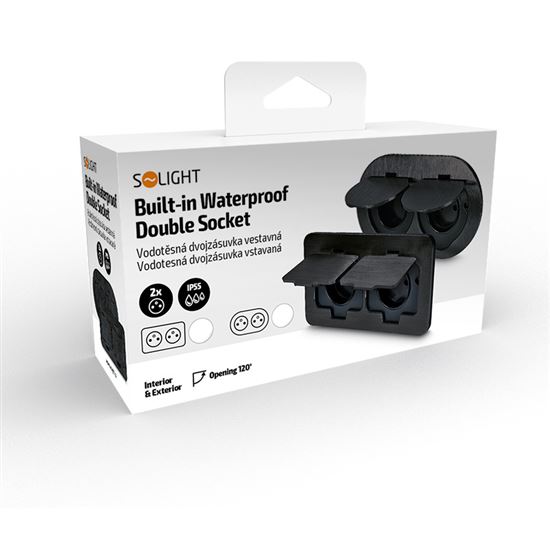 Zásuvka disponuje krytím IP55, čo znamená spoľahlivú ochranu proti striekajúcej vode a prachu. Vďaka dvojitému gumovému tesneniu je chránený nielen vrchný kryt, ale aj samotné viečka. Uzavreté puzdro zabraňuje prenikaniu vlhkosti do vnútra, čo umožňuje použitie aj v náročnejších podmienkach:
