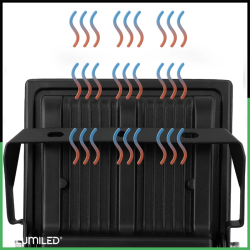 LED reflektor BRIGHT od značky LUMILED predstavuje výkonné a spoľahlivé riešenie pre osvetlenie exteriérov, kde je potrebný vysoký svetelný výkon, odolnosť a dlhá životnosť. Vďaka modernej LED technológii poskytuje silný svetelný tok až 11 000 lúmenov pri nízkej spotrebe 100 W, čím výrazne šetrí elektrickú energiu v porovnaní s klasickými halogénovými reflektormi.