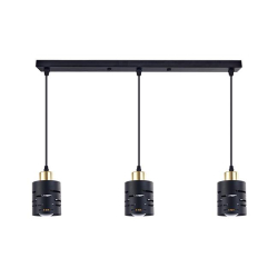 Závesná lampa E27 Elen x3 50 cm čierna + zlatá predstavuje elegantné a moderné osvetlenie vhodné do domácností, bytov aj komerčných priestorov. Kombinácia matnej čiernej farby so zlatými detailmi dodáva svietidlu luxusný vzhľad a vytvára štýlový doplnok do moderných, industriálnych aj loftových interiérov. Trojica samostatných tienidiel zabezpečuje rovnomerné osvetlenie priestoru a zároveň vytvára príjemnú atmosféru v miestnosti.