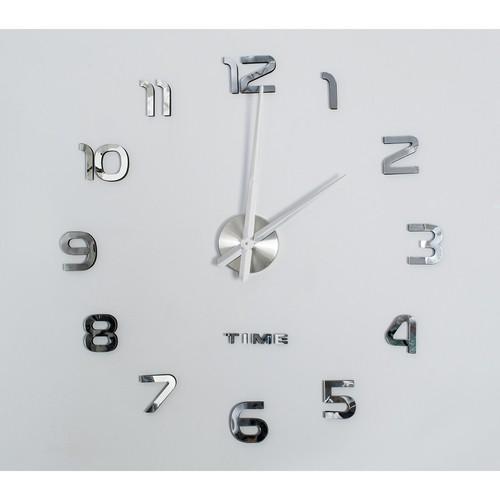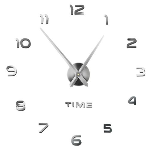 Dominantou hodín sú veľké 3D číslice v elegantnej striebornej farbe s vysokým leskom, ktoré opticky zväčšujú priestor a dodávajú stene luxusný vzhľad. Vďaka nastaviteľnému priemeru si môžete prispôsobiť veľkosť hodín od 60 cm až do 130 cm podľa veľkosti miestnosti alebo vlastného vkusu.