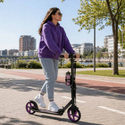 Moderná mestská kolobežka Trike Fix je ideálnym riešením pre každodenné presuny po meste, rekreačné jazdenie aj aktívny oddych. Vďaka praktickému skladaciemu mechanizmu, veľkým 200 mm kolieskam a kvalitnému spracovaniu ponúka vysoký komfort, stabilitu a jednoduchú manipuláciu. Elegantné fialové prevedenie dodáva kolobežke štýlový vzhľad, ktorý zaujme na prvý pohľad.