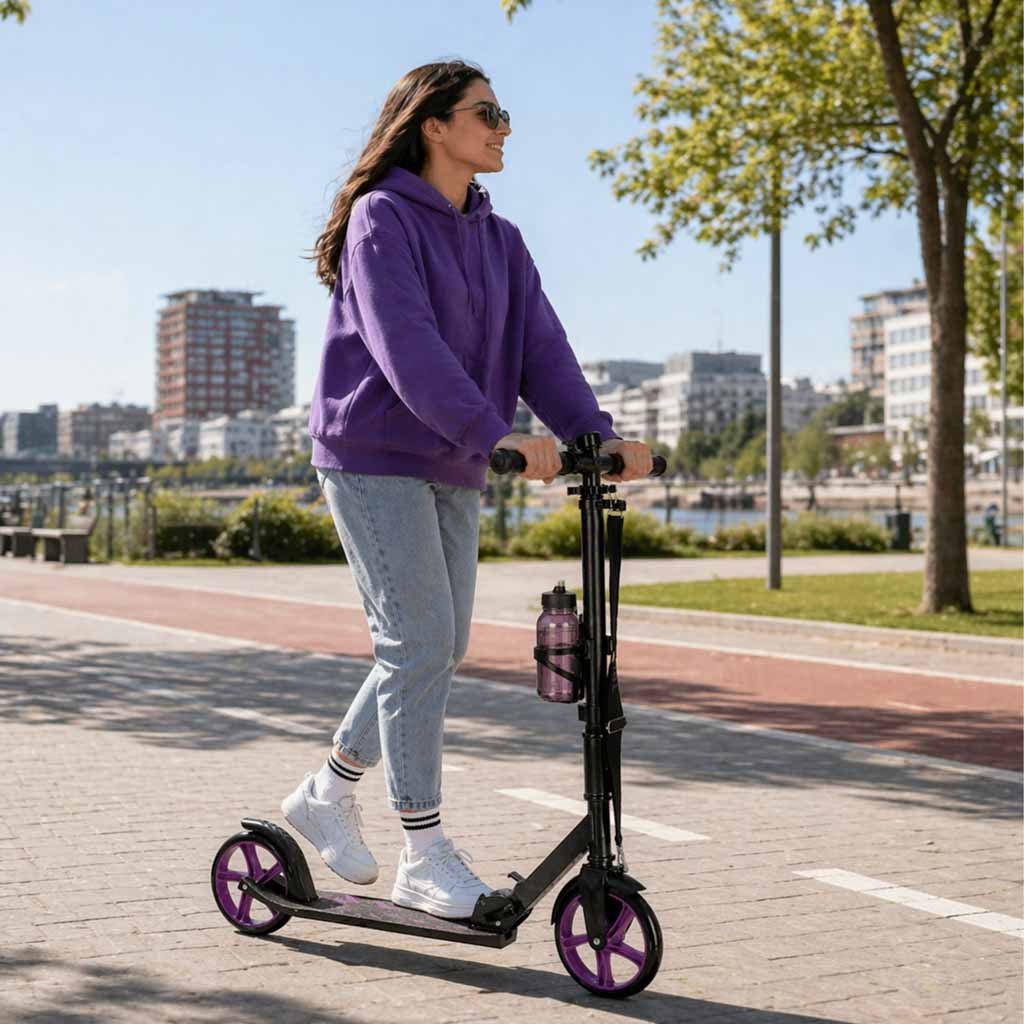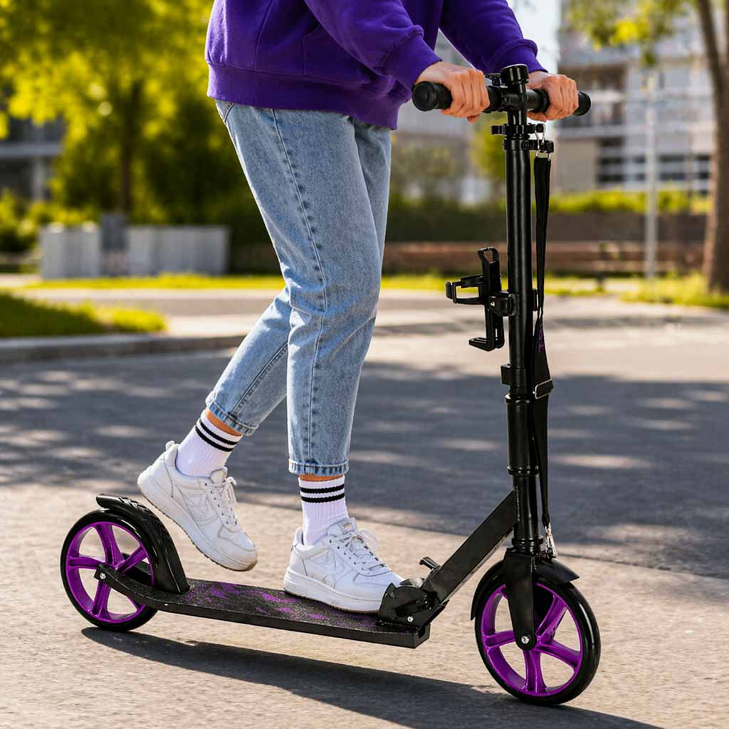 Kolobežka je navrhnutá tak, aby poskytovala maximálne pohodlie počas jazdy. Veľké kolieska efektívne tlmia nerovnosti a zabezpečujú plynulý pohyb aj na menej kvalitnom povrchu. Pevná konštrukcia v kombinácii s protišmykovou nášľapnou plochou zaručuje bezpečnosť a stabilitu pri každom použití.
