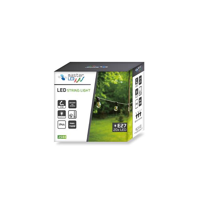 LED girlanda s dĺžkou 20 metrov a 20 päticami E27 je ideálnou voľbou pre štýlové osvetlenie terás, záhrad altánkov, reštauračných letných terás či rôznych exteriérových podujatí. Vďaka odolnému pogumovanému káblu H05RN-F a krytu IP44 je vhodný pre celoročné používanie, odolný dažďu, prachu aj bežným poveternostným podmienkam.