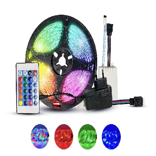 Sada 5m RGB LED pásik 5050 + diaľkové ovládanie + napájací adaptér + IP65
