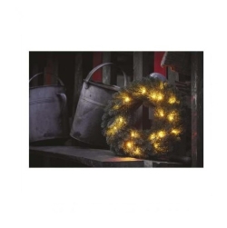 LED vianočný veniec, 40 cm, 2x AA, vnútorný, teplá biela, časovač