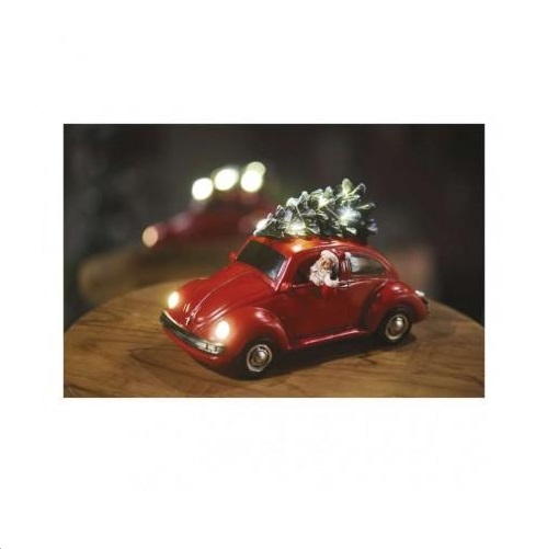 LED červené auto so Santom, 12,5 cm, 3x AA, vnútorná, teplá biela