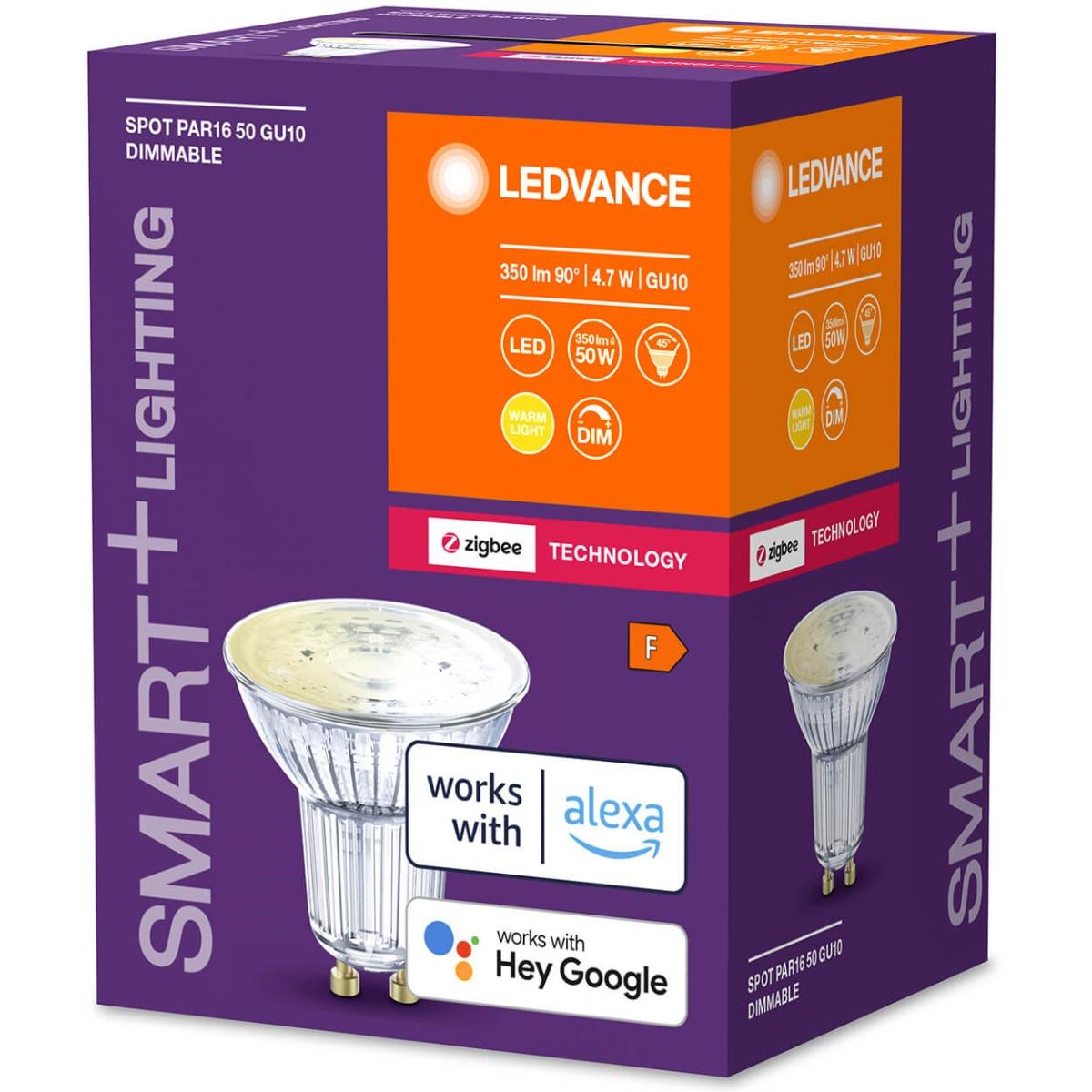 LED žiarovka SMART+ v tvare halogénovej GU10 od renomovanej a uznávanej spoločnosti LEDVANCE, ktorá sa zaoberá osvetlením. Hlavnou charakteristikou žiarovky je, že ju možno ovládať prostredníctvom kompatibilného systému inteligentnej domácnosti (mobilná aplikácia) alebo spínača SMART+ (predáva sa samostatne). Pomocou aplikácie môžeme jednoducho a rýchlo nastaviť úroveň jasu vďaka funkcii stmievania. Žiarovka SMART+ LEDVANCE s výkonom 4,7 W zodpovedá tradičnej 50 W žiarovke. Moderná žiarovka SMART+ LEDVANCE poskytne svetelnú atmosféru pri každej príležitosti. Vysoko odolný výrobok zaručuje jej spoľahlivosť takmer 20 000 hodín. Žiarovka bola vyrobená s využitím moderných riešení s využitím inovatívnej technológie LED, vďaka ktorej dosahujeme vysoké výkonové parametre a vernú reprodukciu farieb. Hlavnou výhodou žiarovky ZIGBEE je nižšia spotreba energie v porovnaní so zariadeniami založenými na protokole Wi-Fi. Ďalšou výhodou je typ pripojenia prostredníctvom mostíka (brány), ktorý odľahčuje záťaž domácej siete a zvyšuje tak jej rýchlosť. Zariadenia ZIGBEE napájané napätím 220 - 240 V pracujú v sieti MESH, čo znamená, že každé zariadenie funguje ako opakovač, ktorý vysiela signál ostatným zariadeniam, takže môžu pracovať na väčšie vzdialenosti bez toho, aby spôsobovali rušenie. Na správnu prevádzku je potrebná brána ZIGBEE. Žiarovka má podporu pre amazon alexa, SIRI a Google Home (k dispozícii vo 4. štvrťroku 2020).