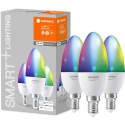 Moderná INTELIGENTNÁ ŽIAROVKA v tvare sviečky B40 (pätica E14) značky LEDVANCE zo série SMART + WiFi Classic je domáce osvetlenie s inteligentným ovládaním pomocou WiFi aplikácie.