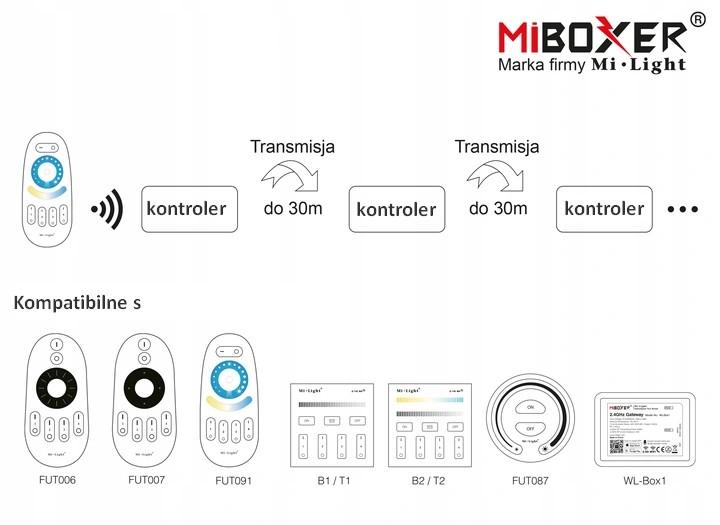 Bezdrôtový RF LED ovládač Mi-Light je určený na pohodlné ovládanie jednofarebných LED pásikov.