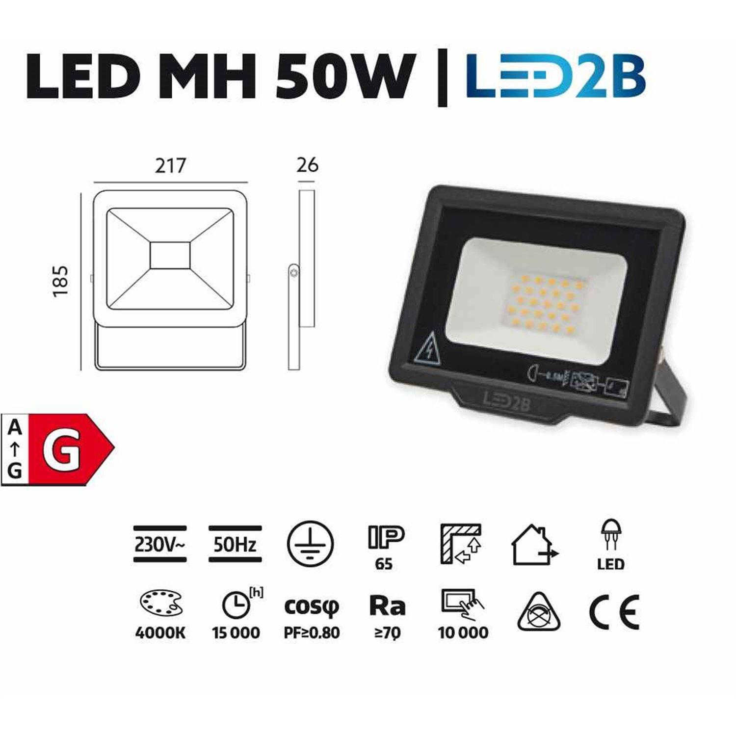 LED REFLEKTOR 50W NEUTRÁLNA BIELA ČIERNY LED2B