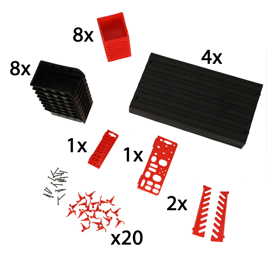 Dielenský organizér je produkt, ktorý uľahčuje udržiavanie poriadku v dielni alebo garáži. Vďaka nej budú mať všetky nástroje a príslušenstvo svoje vyhradené miesto. Poličky a vešiaky je možné usporiadať podľa želania. Panel: 48 x 27 x 1 cm.