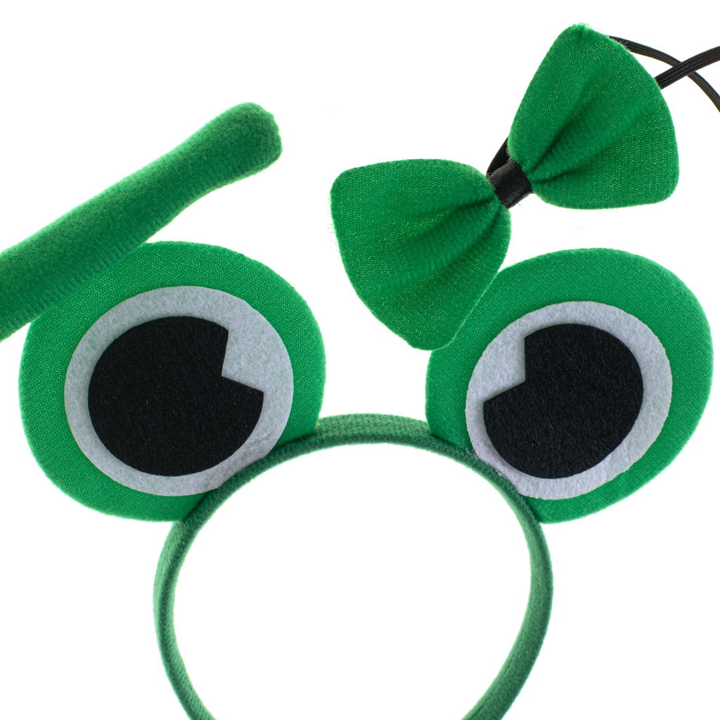 Fantastický kostým žaby - ideálny ako kostým na maškarný kostýmový ples, tematické večierky alebo Halloween. Obsahuje: chvost, čelenka s očami, motýlik. Farba: zelená. Rozmery: chvost: 26,5cm, motýlik: 9,5x5,5cm, očká na čelenku: 8x7cm