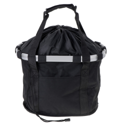 Košík je vyrobený z odolného materiálu a jeho hlavné vrecko sa sťahuje šnúrkou - aby boli prenášané veci počas jazdy vždy v bezpečí.