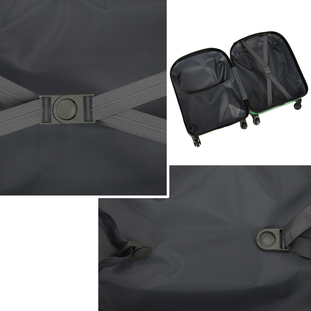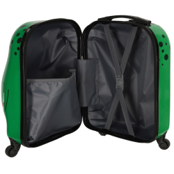 Detský kufor s grafikou krokodíla je dokonalým spoločníkom pre každého malého aj veľkého cestovateľa. Vo vnútri má bezpečnostné popruhy a vrecko na drobnosti - do kufra sa určite zmestí všetko potrebné príslušenstvo dieťaťa . Pre jednoduché použitie je vybavený štyrmi kolieskami pre ľahké ťahanie a teleskopickou rukoväťou . Uzavreté na zips.